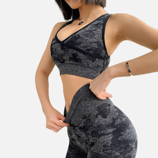 Army Sports Set Seamless Yoga Set Two Piece Set Women Sports Bra Top High Waist Yoga Pants Workout Leggings Sexy Back Gym Clothing