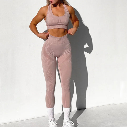 Water Line Yoga Women Gym Fitness Clothing Shorts Sports Bra Gym Suits Femme Sports Set Sportswear